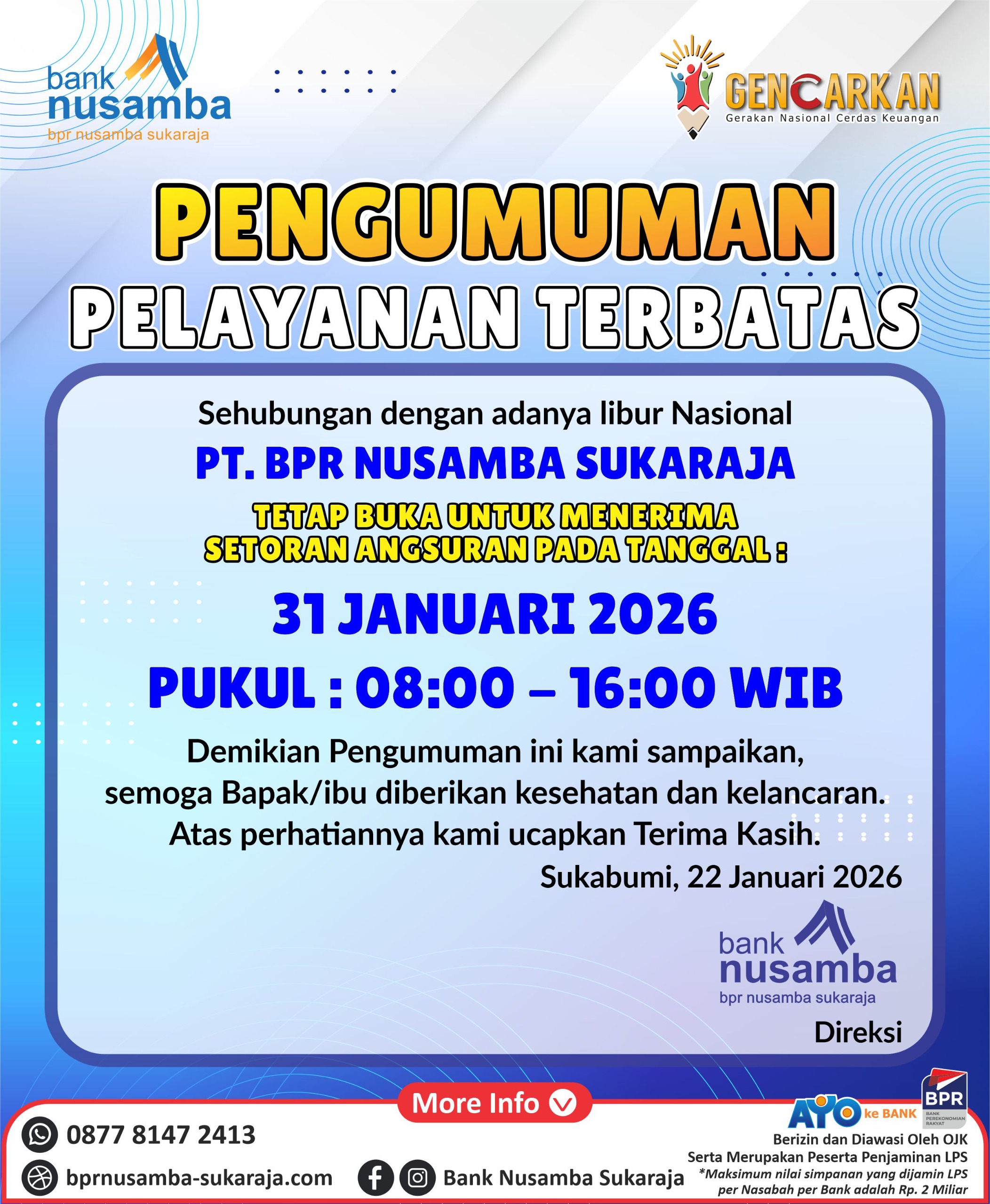 Pelayanan Terbatas 31 Januari 2026