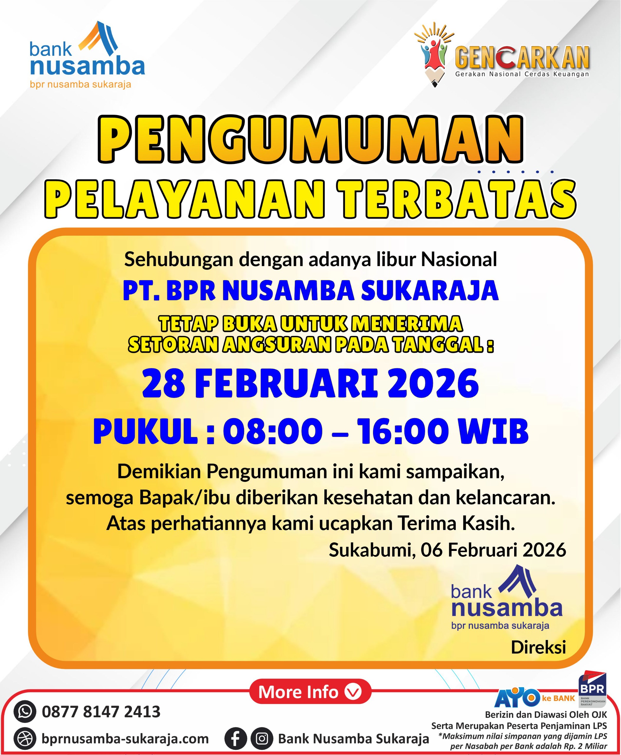 Pengumuman Pelayanan Terbatas 2026
